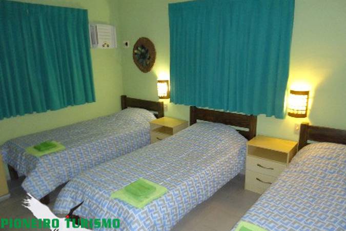Aposentos: 04 apartamentos e 12 leitos com ar-condicionado, Banheiro privativo, Ventilador